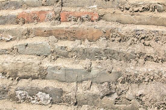 南城墙东段墙体“淳祐”“新州”铭文砖 受访者提供