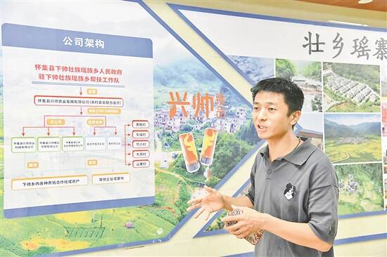 2天时间销售1万多斤水果;短短一周时间收到6万多斤鹰嘴桃销售订单;帮助种养户成功销售山茶油6000多斤、蜂蜜3000多斤,是往年销量的2倍多……兴帅农业创造了多项销售纪录。公司总经理周泓辰表示,兴帅农业探索出了“产业共融、村委共管、发展共享”产业发展模式,接连和广州酒家、海天等大品牌达成合作意向,将推出多款双IP产品。依托兴帅农业,下帅壮族瑶族乡实现土地高效流转,有效整治撂荒地,流转近1900亩土地建立种植示范基地。