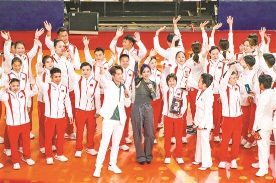 羊城晚报讯 记者王漫琪、通讯员梁源报道:“一样的血,一样的种,未来还有梦,我们一起开拓……”8月30日晚,在巴黎奥运会竞技体操金牌得主刘洋(吊环)和邹敬园(双杠)合唱的《我们都是中国人》歌声中,国家队奥运健儿大汇演达到了高潮。全场观众挥舞着星形荧光灯,现场星光闪烁,为65名内地奥运健儿的逐梦之旅喝彩。