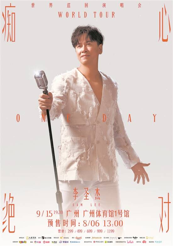 9月15日,李圣杰2024“痴心绝对”出道25周年世界巡回演唱会广州站将登陆广州体育馆1号馆。