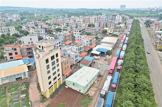 滞留货车停在徐闻县进港公路上 羊城晚报记者 钟振彬 摄