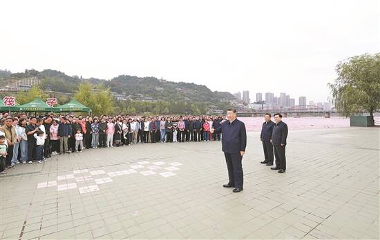 9月10日至13日,中共中央总书记、国家主席、中央军委主席习近平在甘肃考察。这是11日下午,习近平在黄河兰州中山桥段考察时,同在场的干部群众亲切交流 新华社发