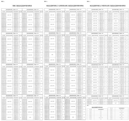 3.原法定退休年龄五十周岁的女职工延迟法定退休年龄对照表