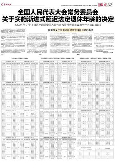 为了深入贯彻落实党中央关于渐进式延迟法定退休年龄的决策部署,适应我国人口发展新形势,充分开发利用人力资源,根据宪法,第十四届全国人民代表大会常务委员会第十一次会议决定: