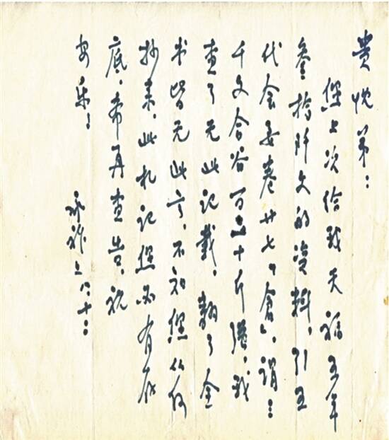 商老是著名古文字学家和书法家,平时对写错别字深恶痛绝,在信中却故意把“忱”字写成形音俱近的“枕”字。第21函说:“一向您以‘快手三’著称,可是现在慢了,何也?岂真‘老爷’乎哉!此言何所指,不须我说。”肯定是贵老替商老办事慢了,商老才如此嗔怪。贵老早岁失学,长而投身行伍,自学成才,从未听说有博士学位。可能是因为他饱学多才,治学规模广阔,商老才戏称他为“贵枕博士”。
