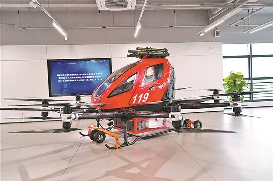 贺天星告诉记者,这款航空器,机动性强,占地面小,不用跑道,起降方便,噪声较低,是低空中短途出行服务的良好载体。