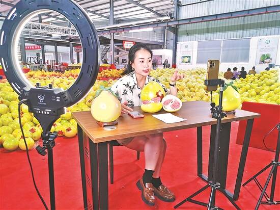与此同时,主播们在直播间推广销售蜜柚。“现在有10位主播为我们带货,每天几万斤蜜柚销往全国,其中广东省内客户占80%。”该公司负责人丘牡香说,今年该公司还将蜜柚出口至美国。