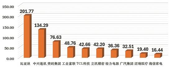 今年中报研发投入前十名上市粤企 (单位:亿元)