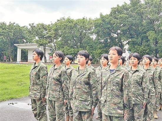 9月24日上午的广州空气微冷,大雨过后,广州市国防教育训练基地的女兵们迎着绵绵细雨在操场上进行役前教育最后一天的训练,铿锵有力的声音响彻宽阔的场地。记者了解到,9月25日,从广州参军入伍的46名女兵启程奔赴军营。