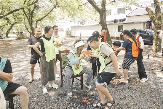 本次趣味运动会代销者分别组成竞彩队、大乐透队、顶呱刮队,开展激流勇进、老公背老婆、蒙眼吃西瓜等团队协作比赛项目,每组队伍中的选手年龄、性别不一,项目各具特色,既考验选手们的个人能力,又展现各队伍团结协作的精神。