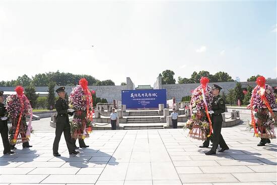 羊城晚报讯 记者高焓,通讯员张显忠、张萌报道:9月30日上午,广州市民政局、中共广州市天河区委宣传部在市银河烈士陵园举行向烈士敬献花篮仪式,缅怀革命先烈,传颂英烈故事,厚植家国情怀。有关单位负责同志及党员干部、部队官兵、学校师生、退役军人、烈士后人代表近100人参加。