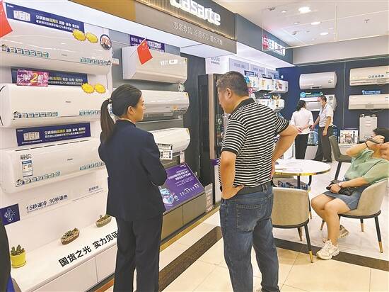 以旧换新带动家电销售,导购员在帮消费者计算优惠金额