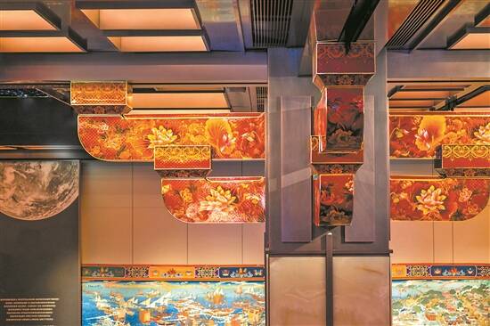 据介绍,博物馆的展厅廊柱匠心呈现景泰蓝掐丝珐琅工艺与中式斗拱智慧,并结合围绕“一带一路”沿线主要国家的文物与艺术元素。博物馆通过藻井轨道顶结构、可移动LED屏和活动展板,实现“中西合璧、古今交融、虚实结合、文化与科技融合”的呈现。