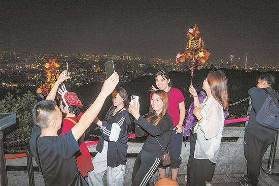 10日晚,广州白云山风景区摩星岭,市民游客登高迎重阳