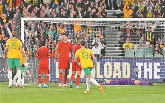 国足原本有机会首次以领先姿态进入半场休息,但胡荷韬为年轻付出代价,他在第47分钟不理智的犯规送给对手前场左侧任意球,澳大利亚中锋米勒力压蒋光太头球扳平。这是国足在本次18强赛的第四粒定位球失球,此前两战曾三次在角球防守中城门失守。