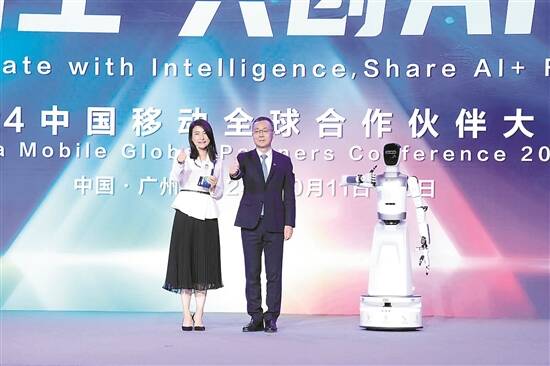 大会现场,在中国移动自主研发的家庭服务机器人配合下,张冬为郭晶晶女士授予“移动爱家大使”工牌,与家庭生态伙伴共同焕新发布“移动爱家”品牌。