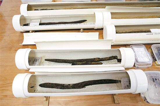 浸泡在纯净水中的平面岗遗址出土新石器时代木器