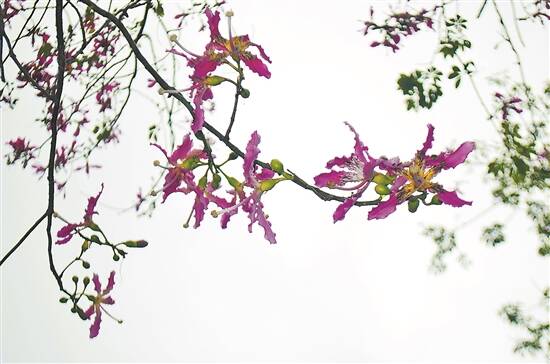 羊城美丽异木棉绽放枝头 羊城晚报记者 黎存根 摄