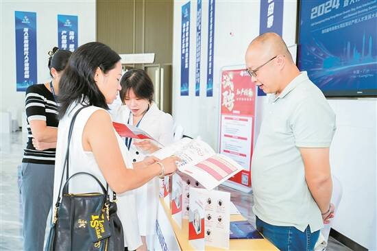 本次活动最热闹的地方,当属会场外的知识产权人才供需对接专区。审协广东中心、喜鹊医药、华进知识产权等超50家企业、服务机构现场设置展位,共发布超过100个职位需求。当天,众多用人单位早早到场,等候求职者到来。
