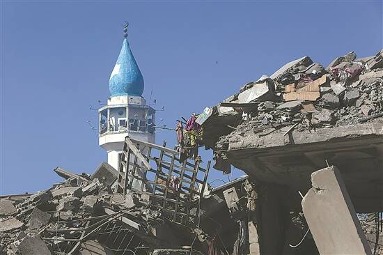 10月13日在黎巴嫩奈拜提耶拍摄的以军空袭后的废墟 新华社发