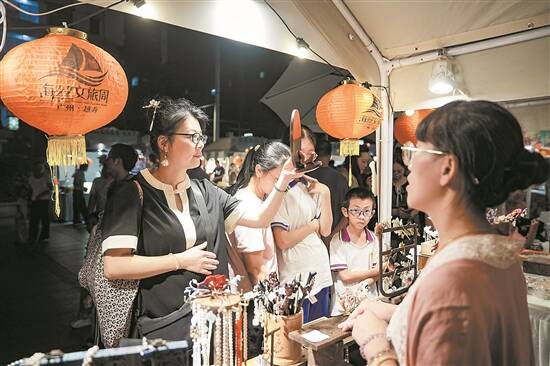 16日,市民在五仙观-南粤先贤馆广场举办的“海丝·潮墟手作市集”选购商品