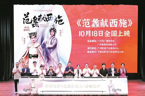 由广东省电影局主办,广东省电影家协会、广东省电影行业协会协办的“广东优秀电影观影推介会暨电影《范蠡献西施》首映礼”10月17日在广州平安大戏院举行。这部粤剧电影改编自同名经典粤剧舞台剧,是“广州市粤剧电影精品工程”中的重点影片。