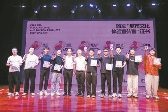 现场邀请了9位全国文化主理人代表担任“城市文化体验宣传官”,包括“杂乱无章”主理人张荆棘、“葵的精神世界”主理人蓝翔、善本文化/BIGGER艺术书展主理人姚泽斌、谢谢设计主理人谢瑞康、第二届广东南海大地艺术节招牌计划策展主理人梁佳、TUSHI Design主理人林孔仔、“一时半刻”主理人张三、中山原石设计/澳门1819咖啡主理人郑皓鹏、STUDIO3.Team主理人梁牧之,这些文化主理人来自文化各细分领域,具有一定的影响力和号召力,未来将多渠道广泛推介湾区城市的文化体验,助力城市形象宣传。
