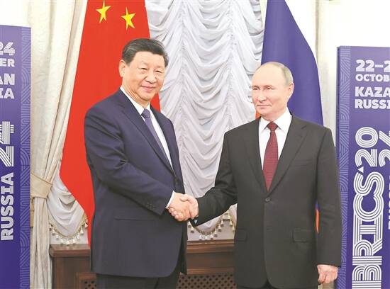 当地时间10月22日下午,国家主席习近平在喀山克里姆林宫同俄罗斯总统普京举行会晤 新华社发