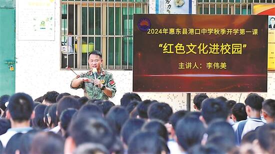 据了解,该系列活动是《实施方案》中的重点工作之一,因此惠东县组织了县草根名嘴、红色讲解员、基层党组织书记、退伍军人、老党员和专家学者等56名优秀宣讲员,到全县200多所中小学进行宣讲,旨在推动红色文化铸魂育人,用红色文化教育引导广大学生赓续红色血脉、“扣好人生第一粒扣子”。