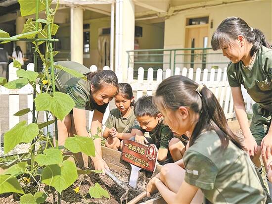 近几年,为明获得了“广州市劳动教育特色学校”“广州市中小学校园劳动实践小农田建设5A级单位”等荣誉,而作为寄宿制学校,劳动教育更是融入日常点滴,“孩子们从入住的第一天就学习如何‘自己的事自己做’,清洁、收纳甚至烹饪技能都学得有模有样,还有学生做好菜分享给我们。”王礼维笑着表示,校园志愿者系列活动也如火如荼地开展,培养劳动意识的同时增加了学生的社会责任感。