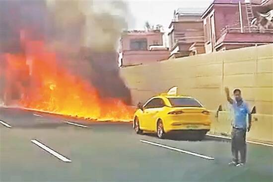 直到交警和消防到场基本扑灭现场大火,确认货车司机、车辆安全后,蒋新民这才驾驶“黄的”返回公司清理车身油污,之后继续正常营运。