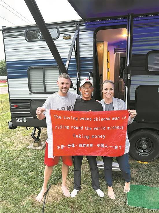 在伊利诺伊州,一位老爷爷为徐一菲提供了水和食物,收留他在院子里留宿,临走之时,老爷爷特地为他写了一封介绍信:“我是来自伊利诺伊州的戴尔,我相信这个来自中国的小伙子是好人,值得帮助他完成挑战。”徐一菲很感动,“有了这封信,我需要到其他人家里留宿时,可以给主人看。”