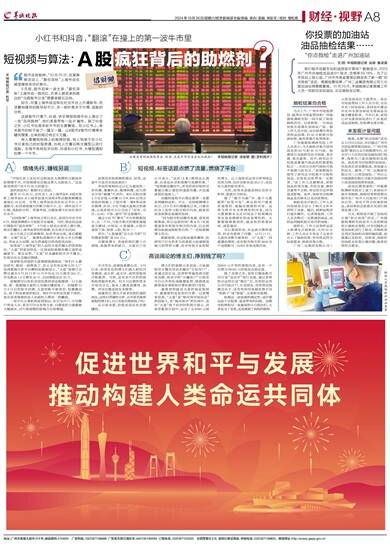 话题热度和平台算法推荐一直都是相辅相成的。不止一名短视频博主坦言,自9月末行情爆发以来,只要在抖音上发布与股市相关内容,就更容易受到算法流量的加持。
