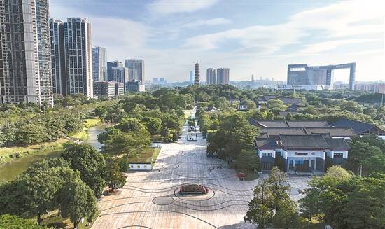 一脉一塔定水苑,三馆灵峰入博境。步入广州水博苑,游客可以感受到建筑设计师在这里精心打造的岭南园林建筑特色。在广州水博苑中,琶洲涌为“一脉”,素有“琶洲砥柱”“广州之眼”美誉的琶洲塔则为“一塔”。而这座与赤岗塔、莲花塔并称为广州明代三塔的砖塔,正是当年海上丝绸之路珠江航道上的照明和信号灯塔,曾肩负着江上指引船舶航行的重任。千百年来,琶洲塔依旧矗立于珠江前航道之上,融汇进江水、云霞和都市霓虹之中,见证着广州城市的繁荣与变迁,也谱写着静谧与繁华交织的历史诗篇。