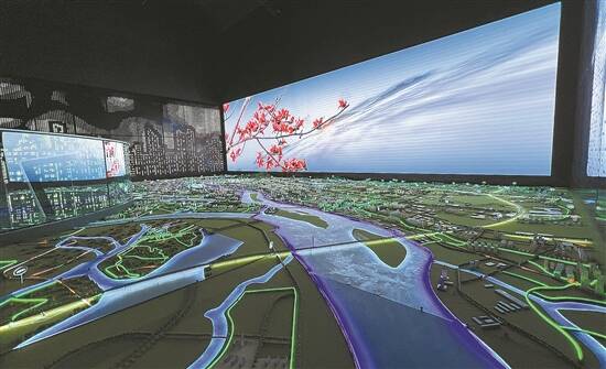 步入展馆,“六脉通渠”大型浮雕静卧其间,以1907年德国营造师舒乐测绘的《广东省城内外全图》为底图,展示着古典广州山水的神韵;生态模型沙盘厅里,投影投射环幕与地面大型沙盘互动,在声光电的交错之中模拟水流律动着城市脉搏,全方位展示着大美广州的独特魅力;更有360度环幕展厅穿越千年水城的悠久历史,直观展示广州水脉、美景的历代变迁……