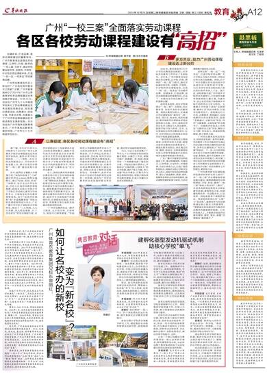 2020年,教育部发布《大中小学劳动教育指导纲要》,对学校劳动教育工作作出了全面指导。近年来,广州市教育局全面落实劳动课程,以学校、科组、教师的“一校三案”为抓手,推动学校建设综合性、实践性、开放性、针对性的劳动课程体系,打造“一校一品、一校多品”劳动教育品牌。创建体系、打造品牌,是劳动课程建设的重要导向,亦是下一步推动全市劳动教育工作的重要议题。