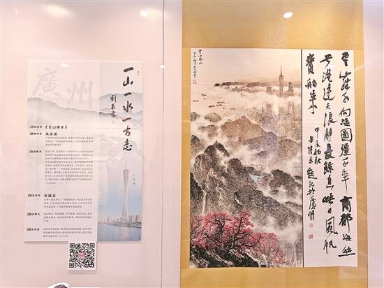 记者看到,展览将山水画、书法和志书相结合,不仅展现了广东的自然风光,还深入挖掘了地方文化特色,让观众在欣赏与品味中感受文化之韵和时代变迁。以《湾区同心 广州原点》为例,该作品以跨越时空的手法,巧妙地将广州的新旧中轴线、港珠澳大桥、香港与澳门的风采,融合于木棉花盛开的春日盛景之中。
