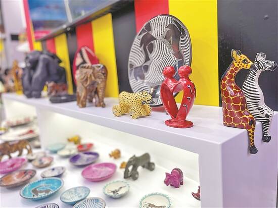 在广交会的乌干达展位上,乌干达商人们热情洋溢地展示着来自家乡的特色产品,包括优质咖啡、精美的手工首饰、草原动物雕刻摆件和手工编织包等。乌干达共和国驻广州总领事馆随员兼乌干达咖啡发展局中国区代表苏朗是清华大学国际关系学院硕士,毕业后一直努力促进乌干达与中国的文化与经贸交流:“广交会对我来说并不陌生,以往我多次以采购商的身份参展,但今年是我第一次作为卖家,推广乌干达的咖啡产品。”