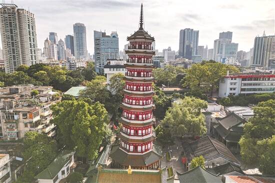 据悉,六榕寺塔始建于梁大同三年(537),原名宝庄严寺舍利塔。原塔后毁于战火,现存塔于北宋年间开始重建,绍圣四年(1097)建成,至今保留着宋代古塔的典型风貌。