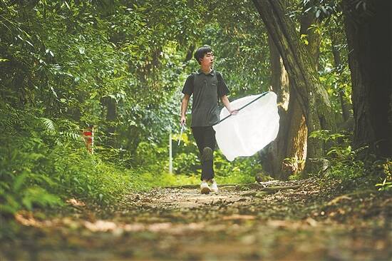 王苇杭在华南农业大学树木园中寻找可以捕获的动物样本
