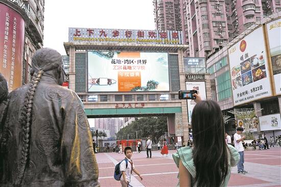 记者4日在上下九广场看到,滚动播放的户外宣传视频吸引市民游客驻足观看。市民陈女士告诉记者,“逛街的时候看到这个文学宣传短片,看到很多文化名人,第一次感觉文学离自己这么近。”游客何先生则表示,通过视频看到了千年商都广州“文化感满满”的另一面。