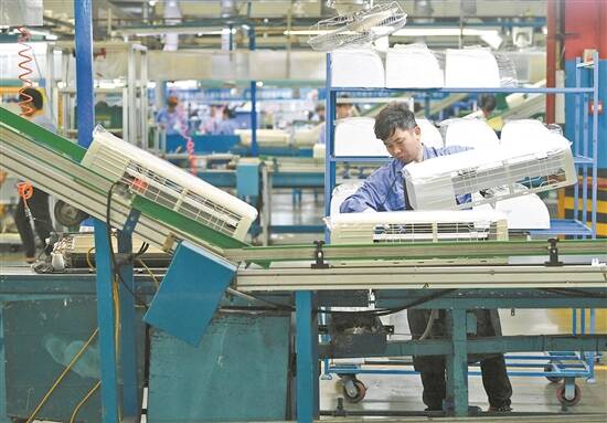 工人在美的家用空调广州工厂的生产线上工作 新华社发
