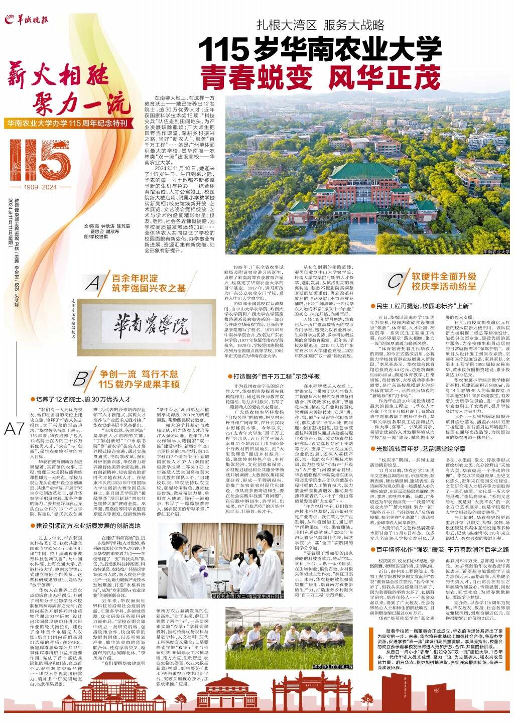 第A07版:薪火相继 聚力一流——华南农业大学办学115周年纪念特刊