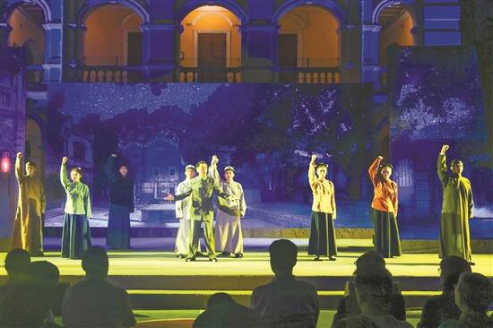 当晚活动的亮点是原创话剧《百年回响》的上演(见图,羊城晚报记者刘畅摄)。该剧以1924年11月孙中山从广州大元帅府北上到1925年3月在北京逝世的历史为蓝本,通过小剧场话剧的形式,生动再现了孙中山先生为国家统一、民族富强、人民幸福不懈奋斗的革命历程,深刻弘扬了他的爱国情怀和崇高风范。