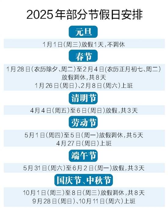 新华社电 《国务院关于修改〈全国年节及纪念日放假办法〉的决定》(以下简称《决定》)日前公布,自2025年1月1日起施行。《决定》共2条,主要规定了以下内容。