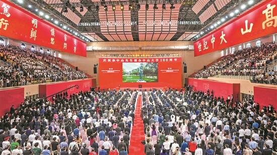 11月12日是中山大学百年华诞。当天上午,庆祝孙中山先生创办中山大学100周年大会暨创新发展论坛在中大广州校区南校园体育馆举行,各级领导、嘉宾、中大海内外校友、师生代表等欢聚一堂。大会由中大党委书记朱孔军主持。