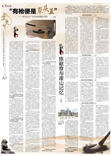 这则新闻是否真有其事、其细节是否准确今天无法查考,值得关注的是民间对枪械的一般态度。《香山旬报》不是八卦小报,是革命党人办的一份比较严肃的地方刊物。记者只把此事作为地方新闻来报道,对新娘嫁妆竟有手枪没有特别评论,更没有说她私藏枪械违反了王法。两家长辈似乎也没有把事情看得太重。可见,在当日的珠三角地区,私人拥有手枪是司空见惯的事。