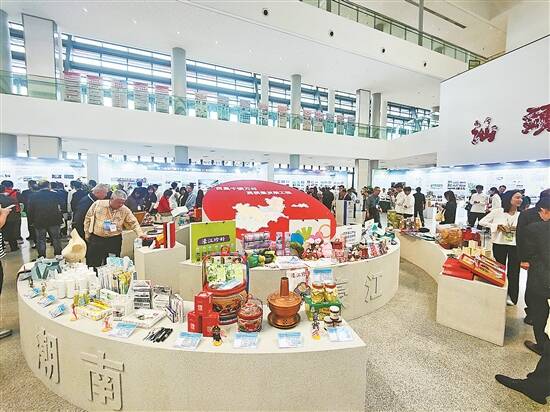 步入展区,便见以红头船设计的专题展板,围绕县域经济、城镇建设、社会力量、对口帮扶协作、乡村振兴等主题,系统介绍汕头深入推进“百千万工程”的重点领域;文创产品、玩具、英歌舞、纺织服装……中心展台区域,汕头六区一县的农、文、旅等方面的特色产品集中展示,向海内外潮人代表们多角度、全方位介绍家乡的新变化、新面貌。