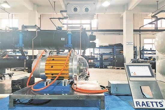“就像飞机加速到一定程度可以脱离地面一样,气悬浮的轴承在旋转开始时是有摩擦的,达到一定高度之后实现无接触,就消除了摩擦。”吴炎光指着气悬浮风机介绍,以前类似的进口风机,功率是37到300kW(千瓦),雷茨智能装备的产品最小能做到2.2kW,对比起来要节能得多。