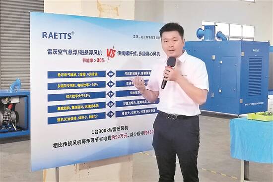 “以300kW(千瓦)的风机为例,我们的风机要比传统风机一年节省150万度电,相当于节省电费接近92万元,每年减碳约480吨。”吴炎光说,磁悬浮控制器、磁悬浮轴承传感器系统、机构设计、自扫频功能技术等让雷茨智能装备用数年时间打破了国外几十年的垄断,由于打破了国外技术垄断,某些产品的成本从8万元降低到了2000元。